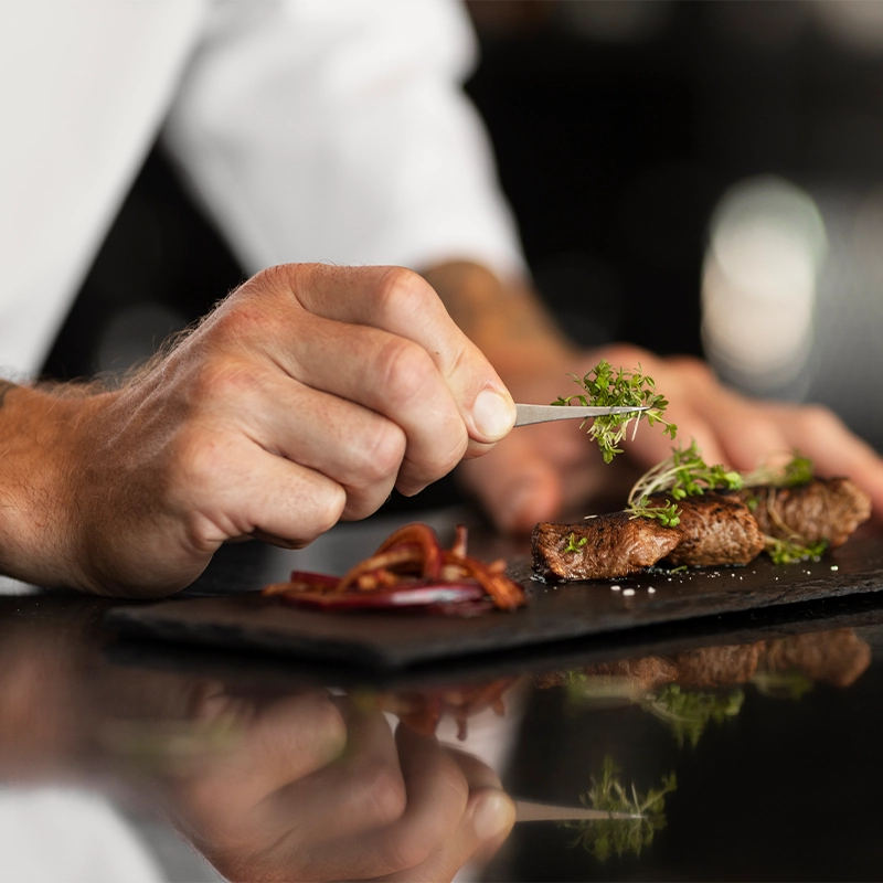 The experienced chefs creates international specialties with unique flavors. Relax with gourmet cuisine and signature cocktails or homemade tonics, all enhanced by beautiful music and gorgeous views over the city. From seasonal menus to dining experiences to satisfy any craving, see what our chefs are preparing for you.